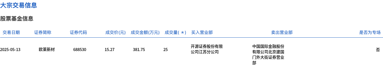 欧莱新材今日大宗交易折价成交25万股,成交额381.75万元