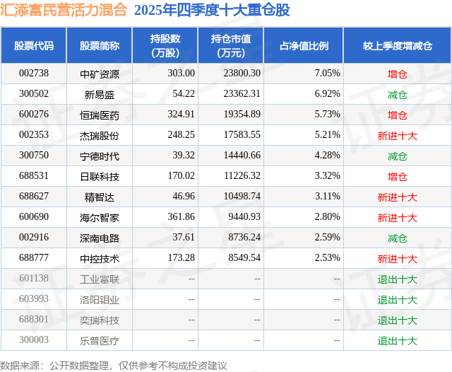 汇添富民营活力混合的前十大重仓股如下: