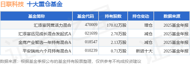 重仓日联科技的公募基金请见下表: