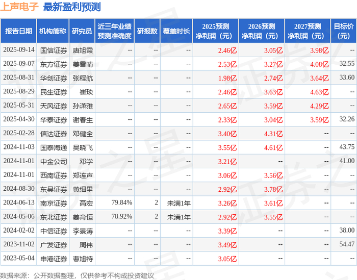 民生证券股份有限公司崔琰,完颜尚文近期对上声电子进行研究并发布了研究报告《系列点评八:25Q3盈利承压 全场景声场方案落地推进》,给予上声电子买入评级。