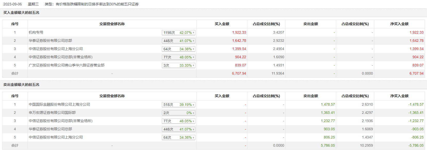 具体来看,机构合计净买入1922.33万元。此外,华泰证券总部、中信证券上海分公司分别买入1642.78万元、1399.54万元;中国国际金融上海分公司、申万宏源证券有限公司国际部分别卖出1478.57万元、1365.41万元。