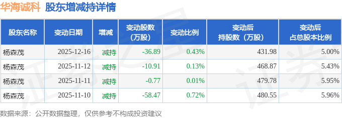 1月8日华海诚科现1笔折价15.94%的大宗交易 合计成交200.44万元