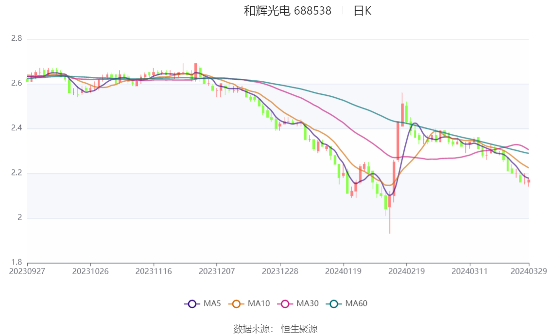 以3月29日收盘价计算,和辉光电目前市盈率(TTM)约为-9.27倍,市净率(LF)约为2.39倍,市销率(TTM)约为9.9倍。