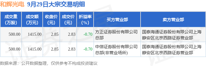 9月29日和辉光电发生2笔大宗交易 成交金额2830万元