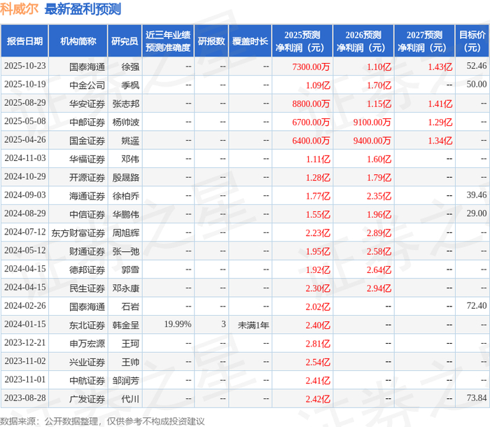 中邮证券有限责任公司杨帅波近期对科威尔进行研究并发布了研究报告《业绩符合预期,看好公司在AI测试电源和氢能产业的持续布局》,给予科威尔增持评级。