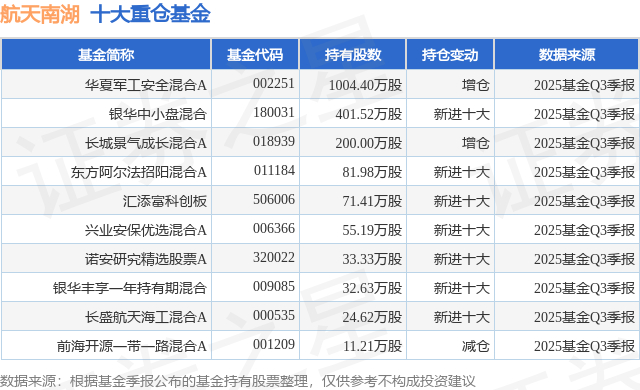 重仓航天南湖的前十大公募基金请见下表: