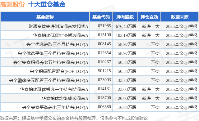 重仓高测股份的前十大公募基金请见下表: