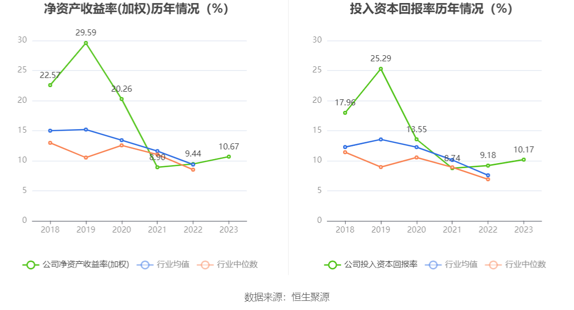数据显示,2023年公司加权平均净资产收益率为10.67%,较上年同期增长1.23个百分点;公司2023年投入资本回报率为10.17%,较上年同期增长0.99个百分点。