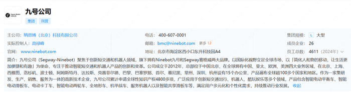 九号公司(Segway-Ninebot)是一家海外注册的公司,总部位于北京,产品包含智能电动平衡车、智能电动滑板车、服务机器人等,旗下拥有Ninebot九号和Segway赛格威两大品牌,在全球拥有中国、亚太、欧洲、美洲四大业务区域,产品遍布全球超100多个国家和地区。