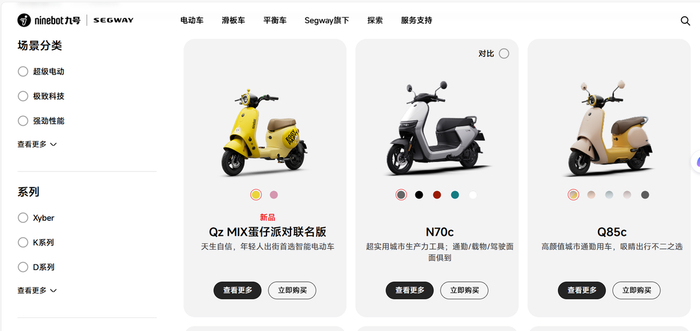 从公司业务板块分布看,旗下电动两轮车依旧是九号公司表现最抢眼的业务板块,第三季度销售148.67万台,实现营收44.54亿元,同比增长约72个百分点。
