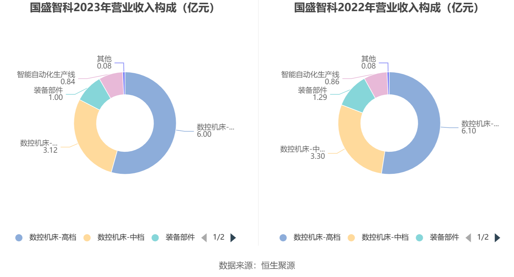 分产品看,数控机床-高档、数控机床-中档、装备部件2023年毛利率分别为27.93%、18.91%、27.33%。