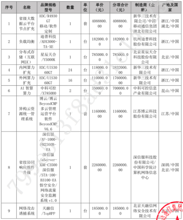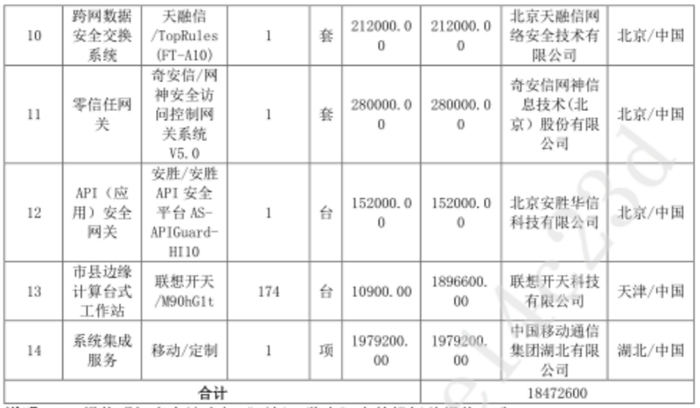 1847 万大单:H3C、迪普、XSKY、中科可控、博云、深信服、天融信、奇安信、安胜、联想、移动(中)