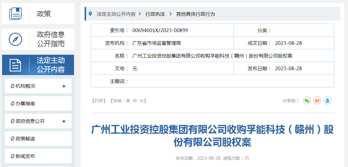 广州工业投资控股集团有限公司收购孚能科技(赣州)股份有限公司股权案