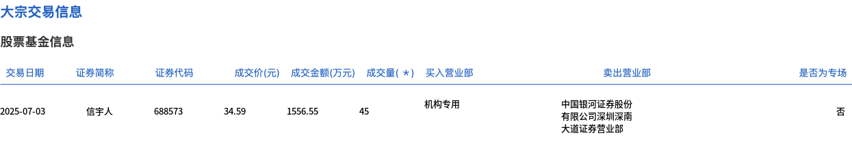 信宇人今日大宗交易折价成交45万股,成交额1556.55万元