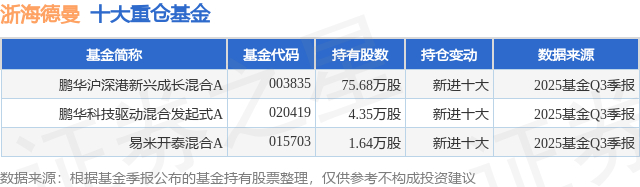 重仓浙海德曼的公募基金请见下表: