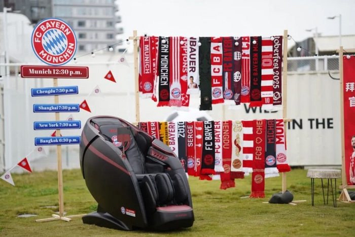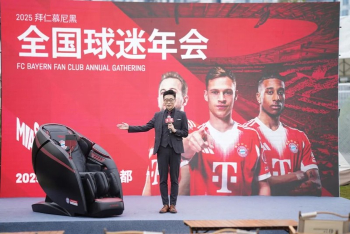 2025年11月1日至2日,拜仁慕尼黑全国球迷赛在成都麓湖海浪运动公园盛大举行,来自全国各地的12支拜仁球迷队伍齐聚一堂,展开为期两天的激烈角逐,拜仁传奇球星克劳迪奥·皮萨罗亲临现场,与全国球迷们近距离互动。作为按摩器具行业的领军品牌,早在去年iRest艾力斯特就与拜仁慕尼黑足球俱乐部达成官方授权合作,iRest艾力斯特深度参与了此次足球盛宴,不仅在活动现场设置按摩椅体验区,供广大拜仁球迷畅享运动后的舒适放松,除此前发布的复芯号V8,更重磅发布了与拜仁慕尼黑官方授权按摩椅超凡大师M6Pro、暖岛时光按摩沙发E55,为足球爱好者们带来运动健康与品牌魅力融合的全新体验。
