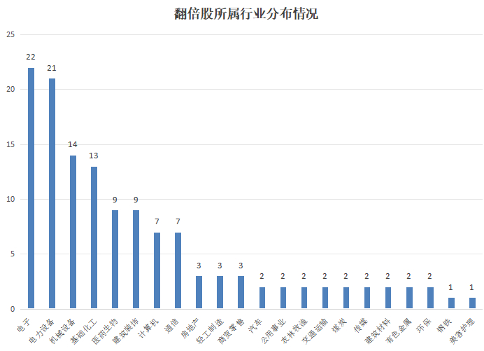 从行业分布情况来看,电子、电力设备、机械设备、基础化工、医药生物企业的数量较多,分别达到22家、21家、14家、13家、9家。