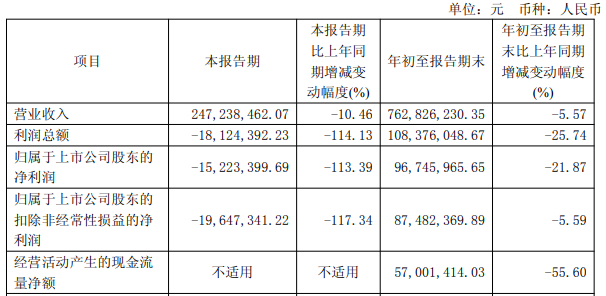 其中第三季度,凌志软件实现营业收入2.47亿元,同比下降10.46%;归属于上市公司股东的净利润-1522.34万元,上年同期为1.14亿元;归属于上市公司股东的扣除非经常性损益的净利润-1964.73万元,上年同期为1.13亿元。