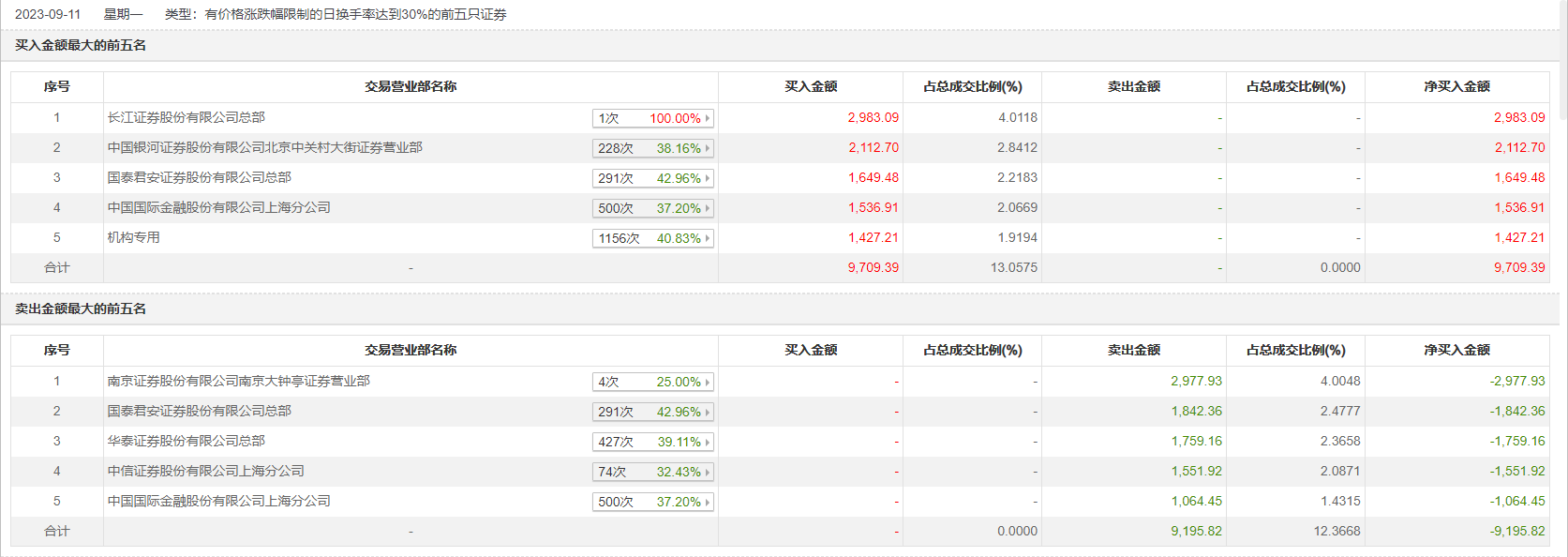 具体来看,机构合计净买入1427.21万元。此外,知名游资现身龙虎榜,长江证券总部、中国银河证券北京中关村大街证券营业部分别买入2983.09万元、2112.70万元;小鳄鱼(南京证券南京大钟亭证券营业部)、国泰君安证券总部分别卖出2977.93万元、1842.36万元。