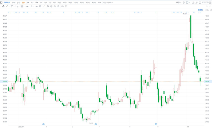 格隆汇10月23日|正帆科技(688596.SH)今日低开低走,午后一度跌5.52%至37.99元,股价创9月25日以来近一个月新低。该股曾于10月14日盘中高见49.8元创历史新高,后股价快速回落收跌,迄今已连续8个交易日下跌累跌23.71%。