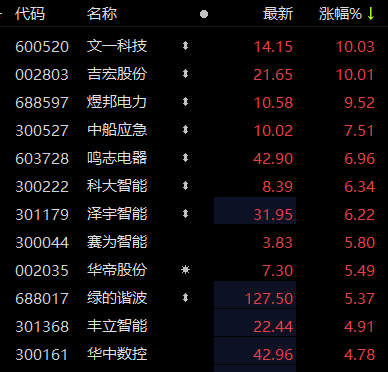 机器人概念股午后异动 煜邦电力拉升涨超9%