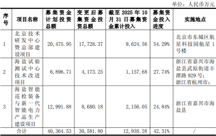 截至2025年10月31日,公司募投项目及募集资金使用情况如下: