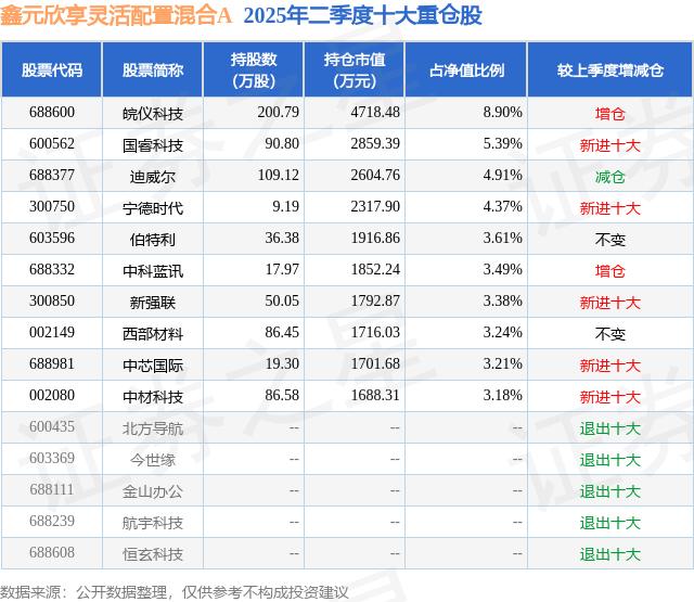 鑫元欣享灵活配置混合A的前十大重仓股如下: