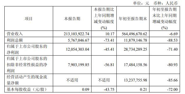 中国经济网北京11月21日讯 力芯微(688601.SH)近期发布的2025年第三季度报告显示,今年前三季度,公司实现营业收入5.64亿元,同比下降6.69%;归属于上市公司股东的净利润2873.43万元,同比下降71.40%;归属于上市公司股东的扣除非经常性损益的净利润1748.42万元,同比下降80.93%;经营活动产生的现金流量净额为1323.78万元,同比下降85.66%。