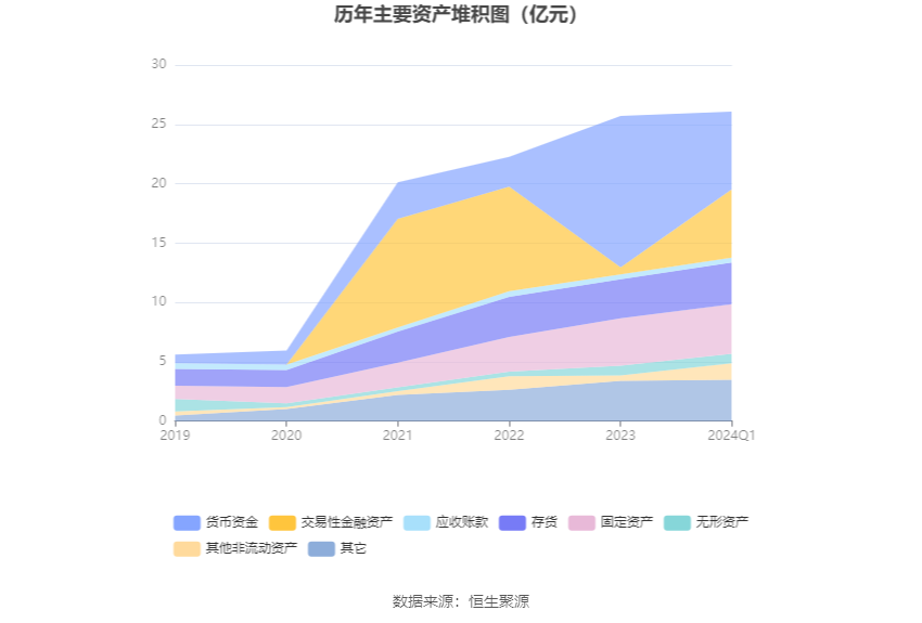 资产重大变化方面,截至2024年一季度末,公司货币资金较上年末减少48.75%,占公司总资产比重下降24.53个百分点;交易性金融资产较上年末增加859.50%,占公司总资产比重上升19.74个百分点;其他非流动资产较上年末增加209.42%,占公司总资产比重上升3.58个百分点;存货较上年末增加6.62%,占公司总资产比重上升0.66个百分点。