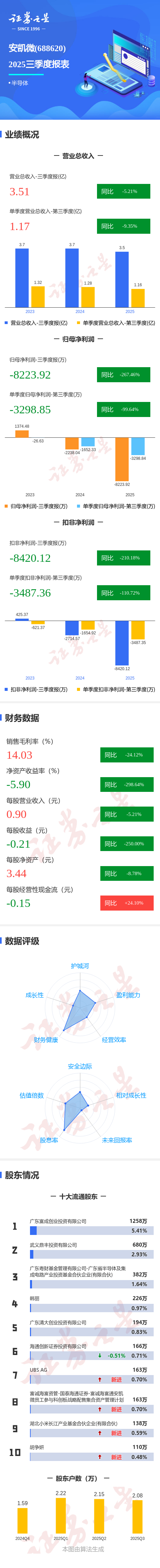 图解安凯微三季报:第三季度单季净利润同比下降99.65%