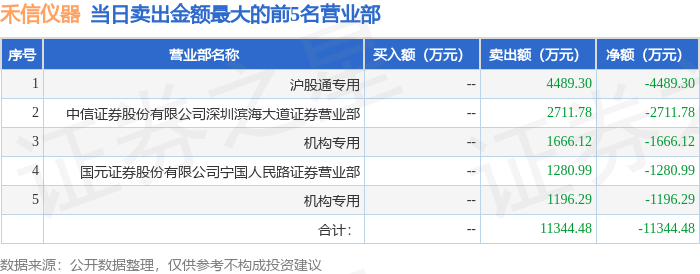 11月21日禾信仪器(688622)龙虎榜数据:游资炒股养家上榜