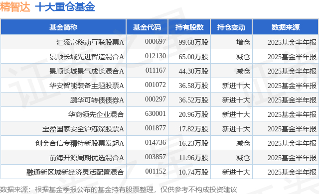 根据2025基金半年报公募基金重仓股数据,重仓该股的公募基金共21家,其中持有数量最多的公募基金为汇添富基金的汇添富移动互联股票A。汇添富移动互联股票A目前规模为23.17亿元,最新净值2.539(9月26日),较上一交易日下跌3.53%,近一年上涨97.59%。该公募基金现任基金经理为沈若雨。沈若雨在任的基金产品包括:汇添富创新活力混合A,管理时间为2021年1月12日至今,期间收益率为8.81%;汇添富互联网核心资产六个月持有混合A,管理时间为2021年9月15日至今,期间收益率为29.08%;汇添富ESG可持续成长股票A,管理时间为2023年12月28日至今,期间收益率为83.08%;