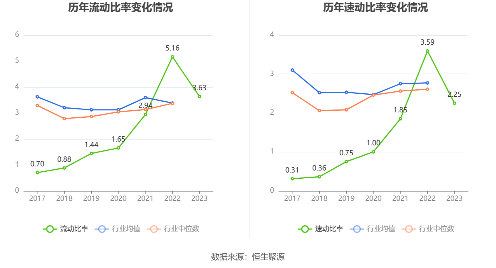 2023年,公司流动比率为3.63,速动比率为2.25。