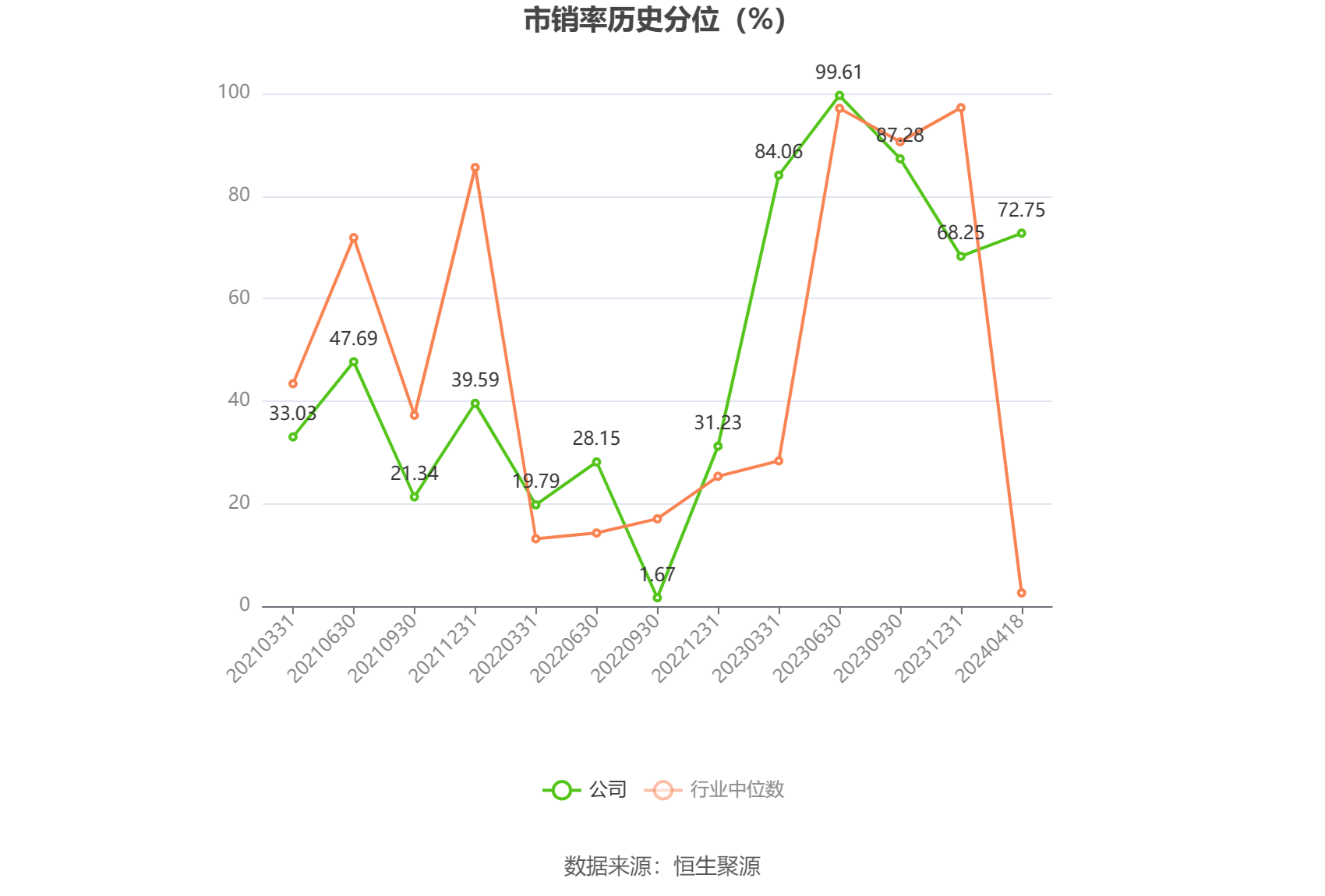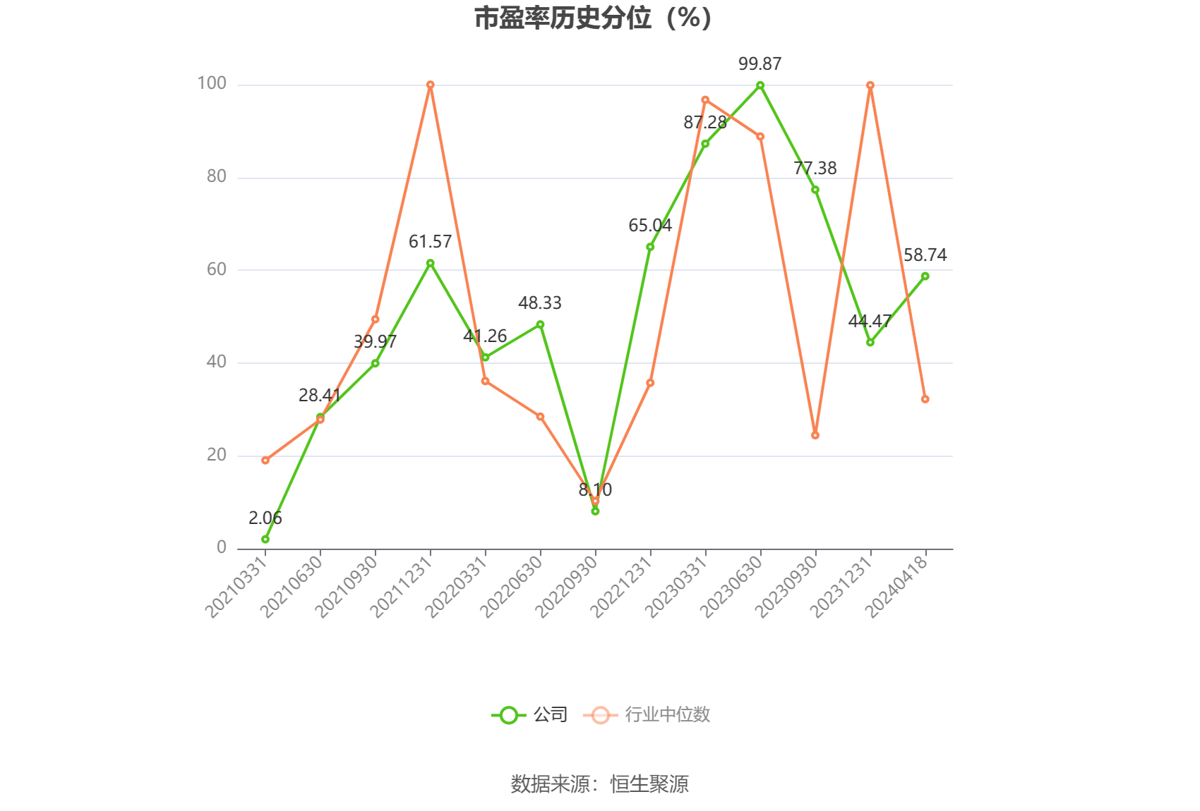 市盈率为负时,不显示当期分位数,会导致折线图中断。