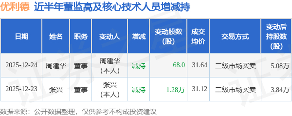 优利德近半年内的董监高及核心技术人员增减持详情如下: