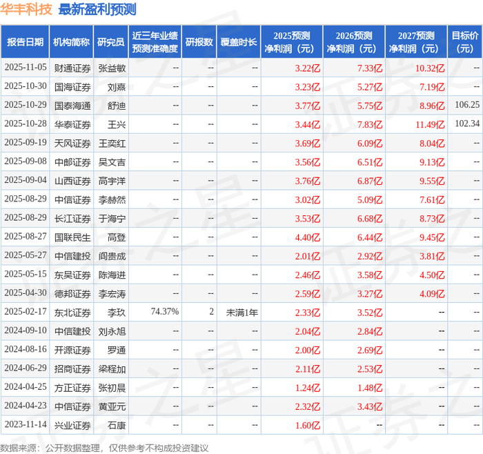 中邮证券有限责任公司吴文吉,万玮近期对华丰科技进行研究并发布了研究报告《高速线模组持续上量》,给予华丰科技增持评级。