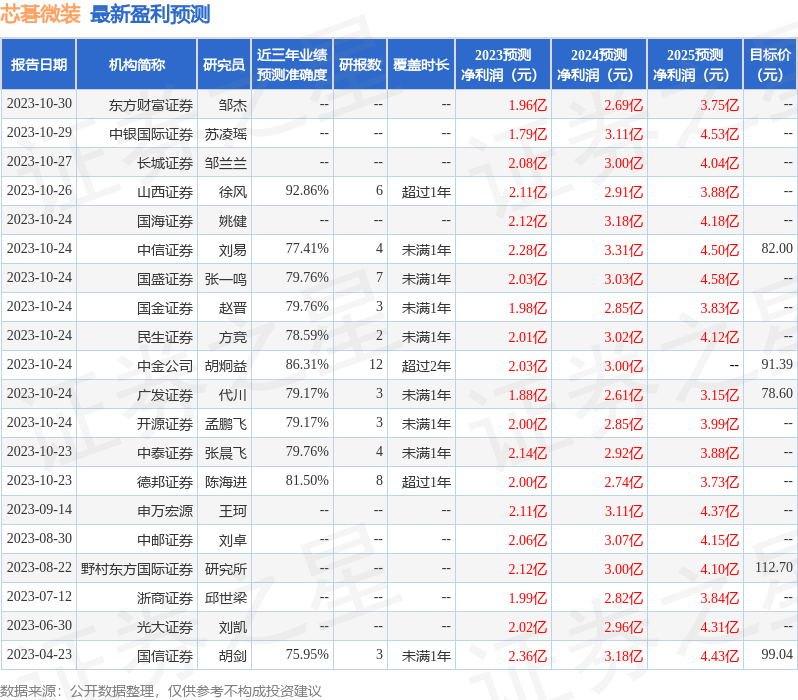 最新盈利预测明细如下:
