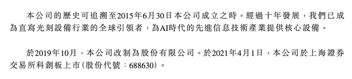 芯碁微装是直写光刻行业的企业,为AI时代的先进信息技术产业提供核心设备。其凭借在核心高精度微纳光刻技术研发以及将自有技术应用于各种创新应用的成熟能力,致力于为全球客户制造、销售及维护直接成像及直写光刻设备。