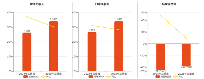 公司营业总收入为9.34亿元。归母净利润为1.99亿元。经营活动现金净流入为-3571.90万元,在已披露的同业公司中排名第132。