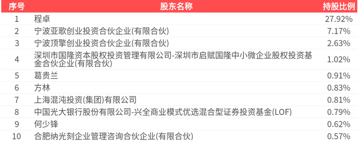 公司股东户数为2.06万户,前十大股东持股数量为5702.62万股,占总股本比例为43.29%,前十大股东持股情况如下: