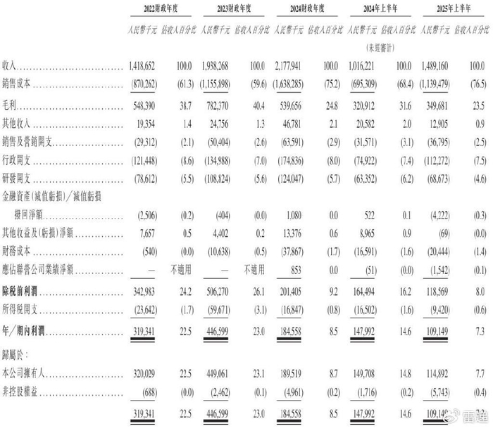 招股书显示,华恒生物2022年、2023年、2024年营收分别为14.19亿元、19.38亿元、21.78亿元;毛利分别为5.48亿元、7.82亿元、5.4亿元;毛利率分别为38.7%、40.4%、24.8%;期内利润分别为3.19亿、4.47亿、1.85亿元;期内利润率分别为22.5%、23%、8.5%。