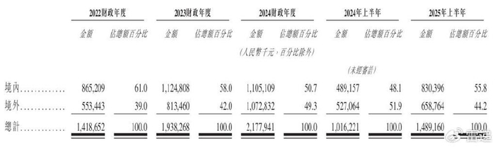 从收入构成来看,华恒生物2025年上半年来自境内收入为8.3亿元,占比为55.8%;来自境外收入为6.59亿元,占比为44.2%。