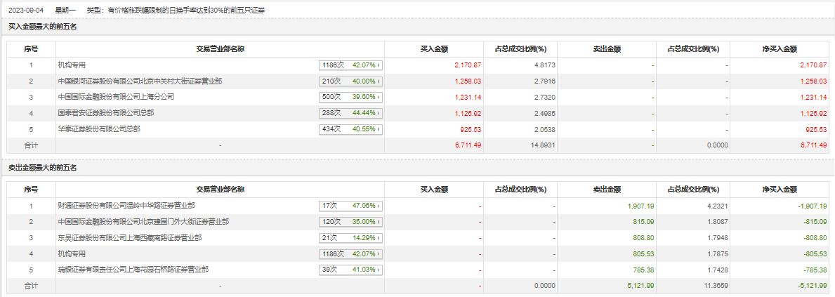 具体来看,机构买入2170.87万元,卖出805.53万元,合计净买入1365.34万元。此外,财通证券温岭中华路证券营业部、中国国际金融北京建国门外大街证券营业部分别卖出1907.19万元、815.09万元;中国银河证券北京中关村大街证券营业部、中国国际金融上海分公司分别买入1258.03万元、1231.14万元。