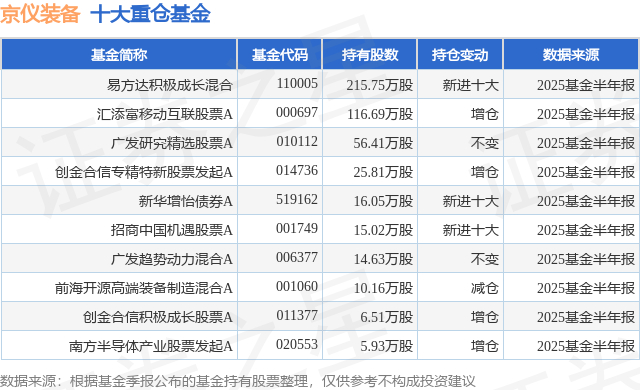根据2025基金半年报公募基金重仓股数据,重仓该股的公募基金共15家,其中持有数量最多的公募基金为易方达基金的易方达积极成长混合。易方达积极成长混合目前规模为24.93亿元,最新净值0.8021(9月29日),较上一交易日上涨2.32%,近一年上涨83.3%。该公募基金现任基金经理为何崇恺。何崇恺在任的基金产品包括:易方达国防军工混合A,管理时间为2019年11月28日至今,期间收益率为110.44%;易方达竞争优势企业混合A,管理时间为2025年6月21日至今,期间收益率为31.32%。