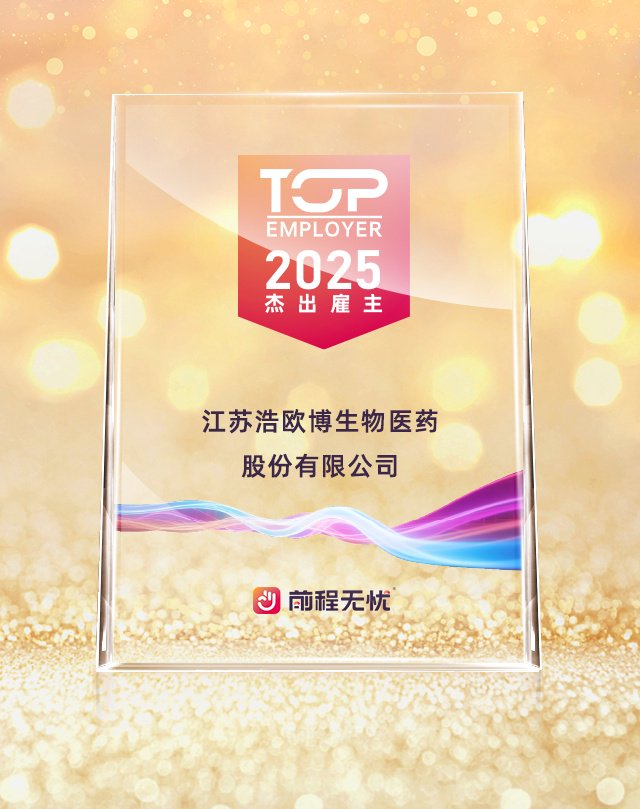 历经数月角逐,江苏浩欧博生物医药股份有限公司凭借在企业战略、雇主品牌建设、持续学习和发展等方面的卓越表现从6000多家受邀参选企业中脱颖而出,荣获“2025杰出雇主”。