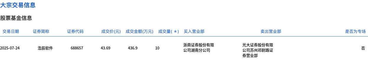 浩辰软件今日大宗交易折价成交10万股,成交额436.9万元