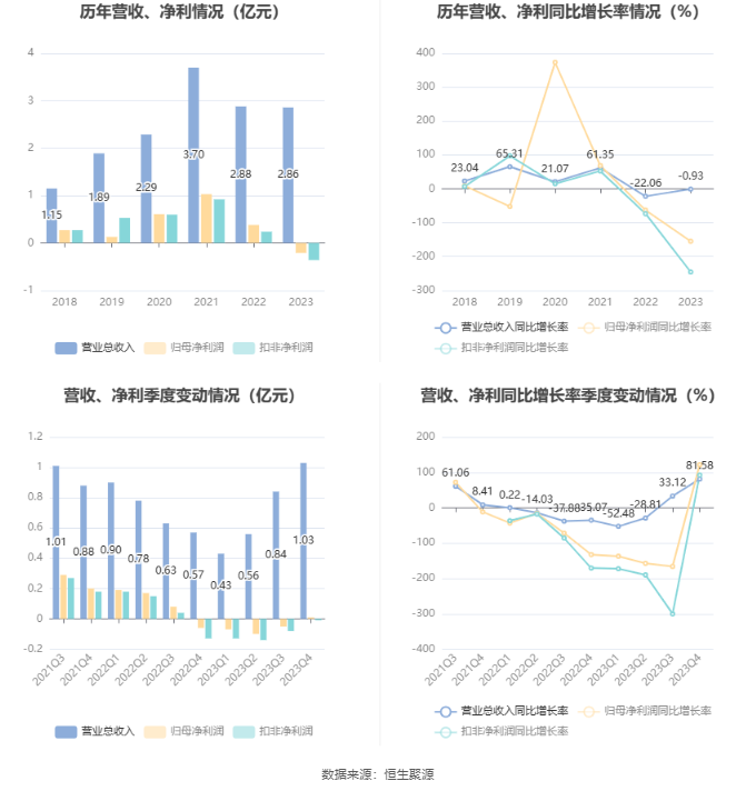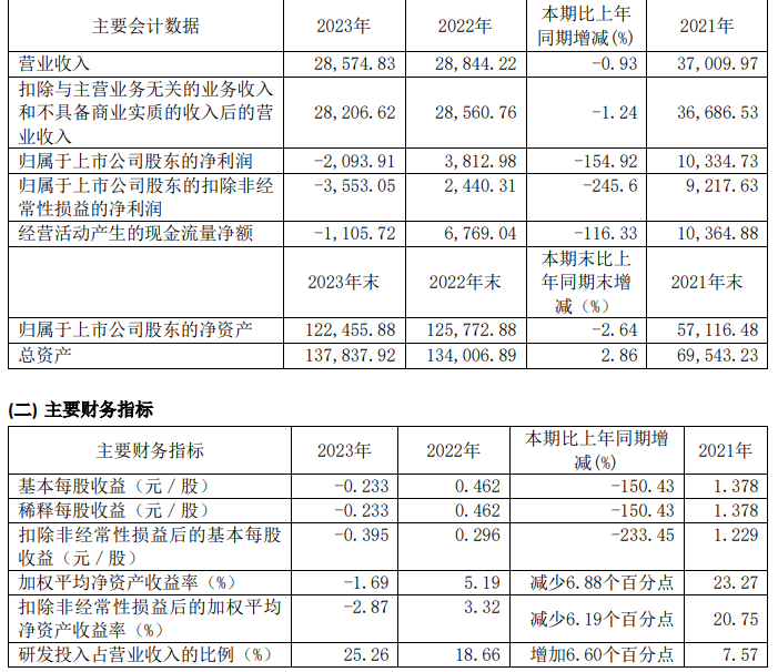 数据显示,2023年公司加权平均净资产收益率为-1.69%,较上年同期下降6.88个百分点;公司2023年投入资本回报率为-3.51%,较上年同期下降7.29个百分点。