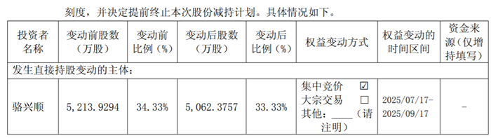 骆兴顺减持均价为40.56元到44.30元/股,套现7316万元。骆兴顺一共减持了1.12%股权,仍持有公司33.3297%股权。