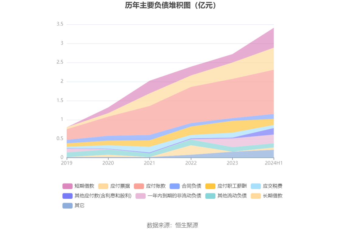 负债重大变化方面,截至2024年上半年末,公司短期借款较上年末增加136.19%,占公司总资产比重上升2.13个百分点;其他应付款(含利息和股利)较上年末增加622.77%,占公司总资产比重上升1.08个百分点;应付票据较上年末增加34.06%,占公司总资产比重上升0.85个百分点;应付职工薪酬较上年末减少47.68%,占公司总资产比重下降1.27个百分点。