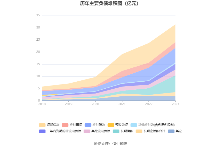 负债重大变化方面,截至2023年年末,公司长期借款较上年末增加151.56%,占公司总资产比重上升7.43个百分点;长期应付款合计较上年末增加369.09%,占公司总资产比重上升2.32个百分点;其他流动负债较上年末增加62.67%,占公司总资产比重上升1.28个百分点;一年内到期的非流动负债较上年末增加58.14%,占公司总资产比重上升1.18个百分点。